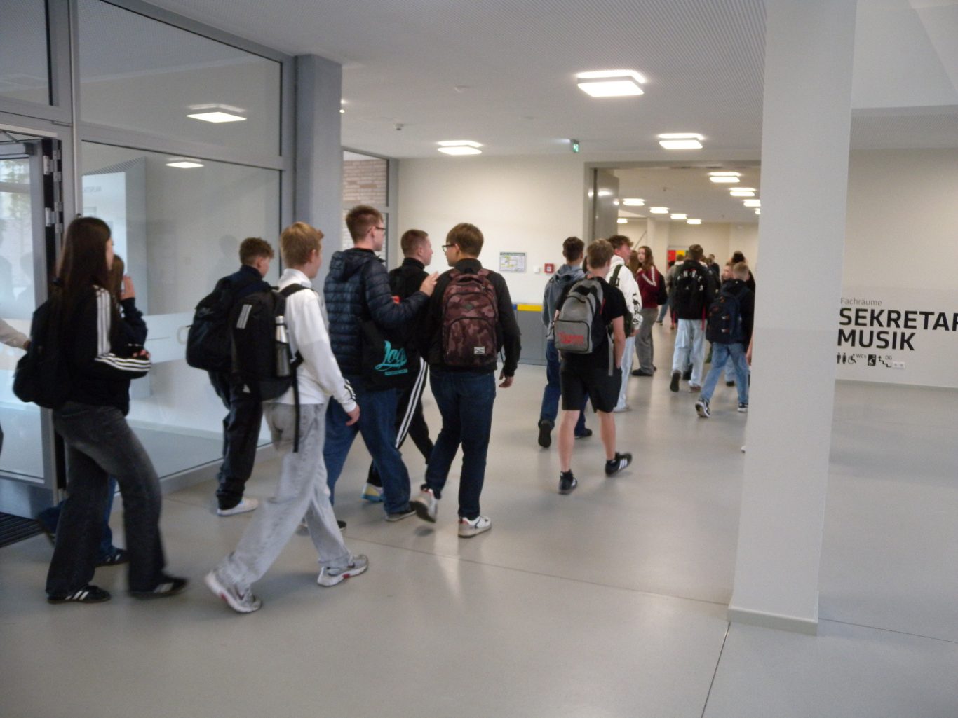 Wie es an der Schule üblich ist, wurden die Jugendlichen vom Schulleiter Herrn Franke in Empfang genommen und zur Theatertreppe der Schule geleitet, wo sie feierlich begrüßt wurden.